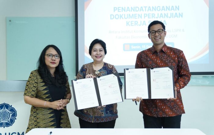 LSPR Institute of Communication & Business dan Fakultas Ekonomi dan Bisnis Universitas Gadjah Mada (FEB UGM) secara resmi meresmikan kerja sama kelembagaan melalui penandatanganan Nota Kesepahaman (Memorandum of Understanding/MoU) yang diselenggarakan di Pertamina Tower, Fakultas Ekonomika dan Bisnis Universitas Gadjah Mada, pada Senin, 15 Desember 2025.